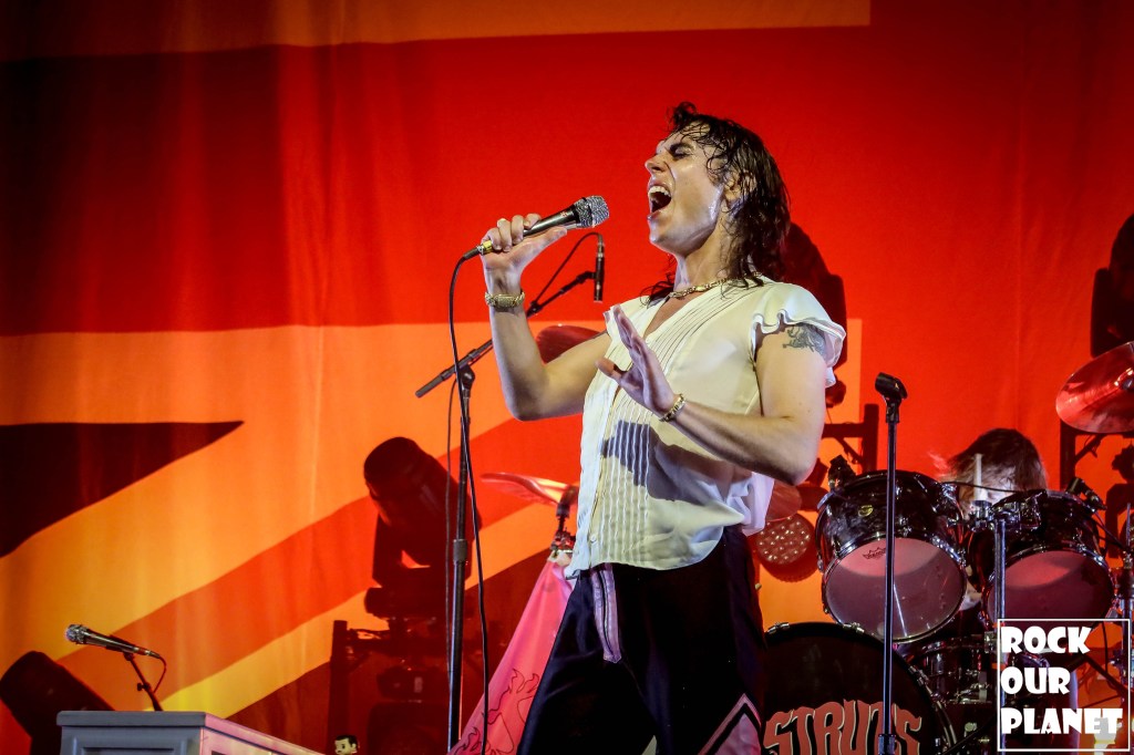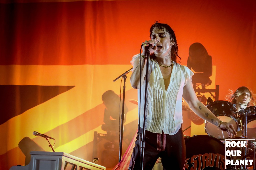As soon as the band took stage charismatic Luke Spiller starts working the crowd into a frenzy before kicking into ‘Primadonna Like Me’ off their second album ‘Young & Dangerous’. The Struts’ Luke Spiller is the musical love child of ‘Queen’s’ Freddie Mercury and ‘The Rolling Stone’s’ Mick Jagger. Spiller has the flamboyance of Freddie Mercury, the Swagger of Mick Jagger, and commands the stage better than musicians that have been around twice as long as The Struts. Spiller even has a Freddie Mercury Pop figure sitting on his piano. Around midway into the set the band slowed things down a bit and brought out one of their guitar techs as bassist Jed Elliott was not with the band for their St. Louis stop.