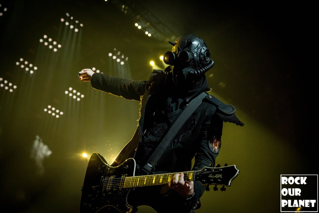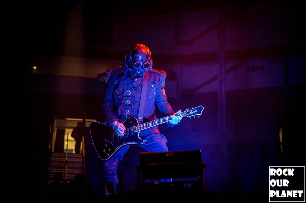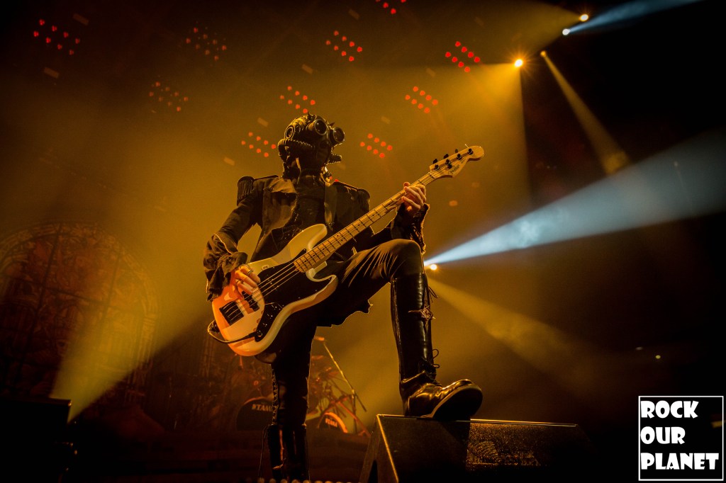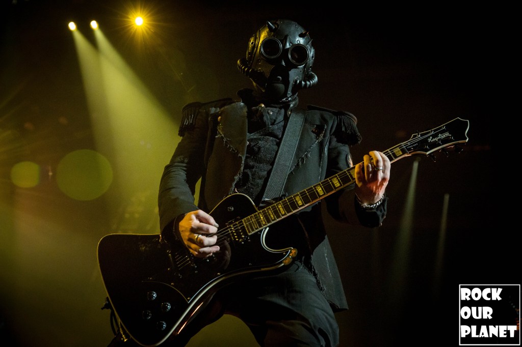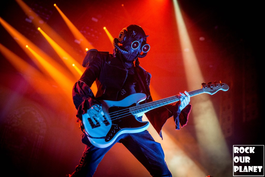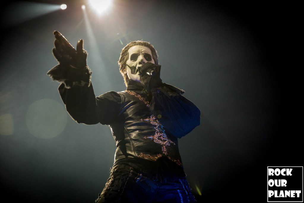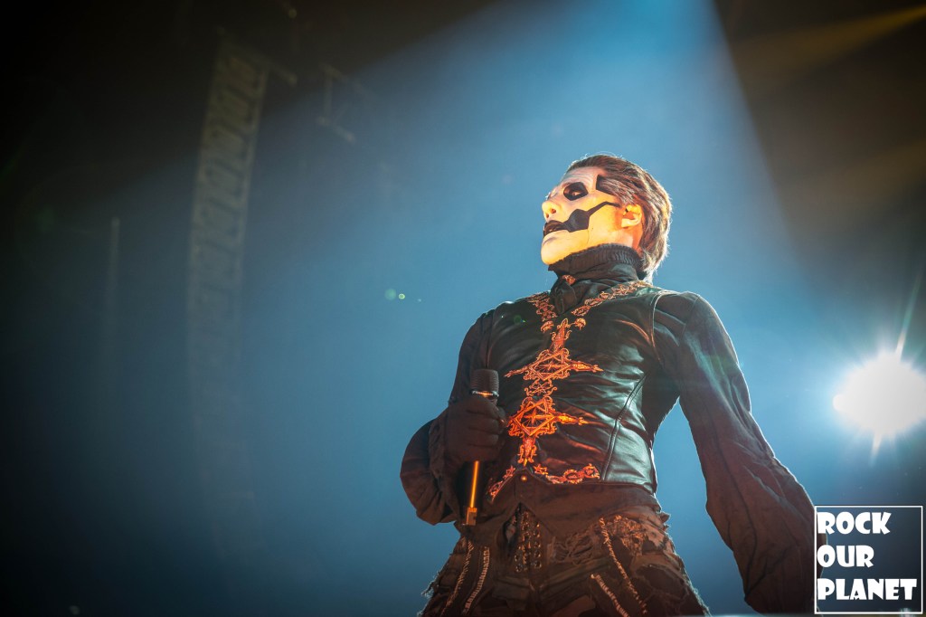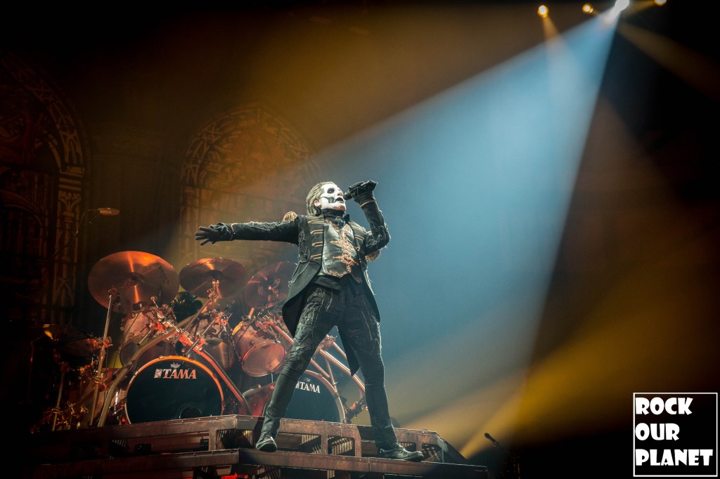 Since the last tour a few things have changed. Gone are the chrome facemasks of the Nameless Ghouls and the have been replaced with what is more a steampunk or post-apocalyptic type mask and Cardinal Copia was “elevated” to become Papa Emeritus IV. If you were wanting to hear the new single ‘Call Me Little Sunshine’ off their upcoming album ‘Impera‘ tonight you were out of luck as the band is under contract to debut it live on Jimmy Kimmel Live! but did kick off things with a new song ‘Kaisarion’ from the upcoming album. Papa Emeritus IV goes through so many costume changes it puts some pop stars to shame. Whether its a tattered jacket that looks like he could be a ringmaster at a dark carnival, bat wings, flowing robes, or a rhinestone studded jacket that made him look like a Satanic lounge singer. After a few songs as is accustomed at Ghost shows Papa takes a breather and engages the fans. He asked the crowd if they were drinking anything to the reply of a roaring crowd or maybe a little something in the parking lot before the show. Then asked if they liked movies and began playing ‘Hunter’s Moon’ that was used in last years ‘Halloween Kills’ movie. Even the Nameless Ghouls seemed to get into the antics when near the end of one song one of them held a note for a long period of time and then another came over and held his finger to his face in a be quiet kind of gesture but he just kept holding the note. Nearing the end of the set they played a cover of ‘Enter Sandman’, off of last year’s ‘Metallica Blacklist’ covers collection.