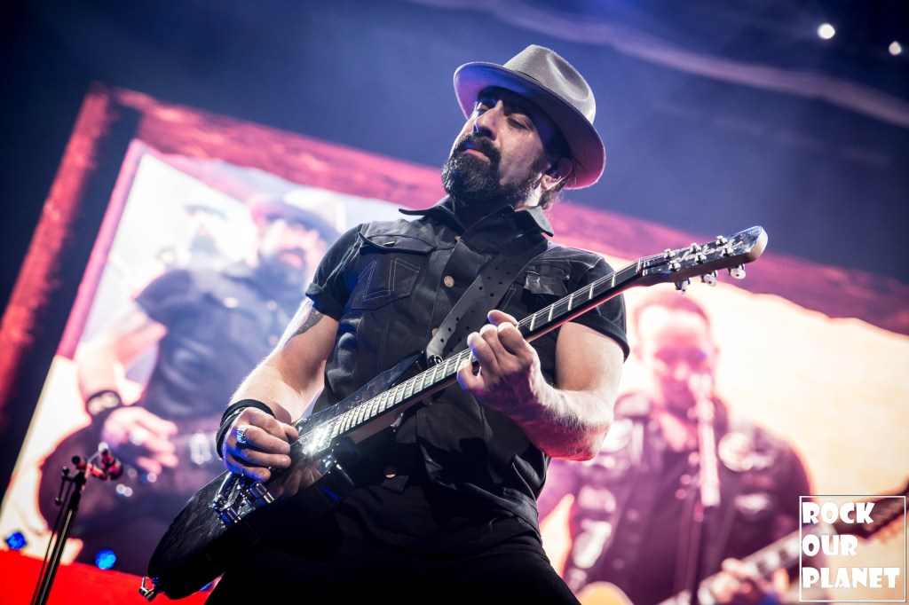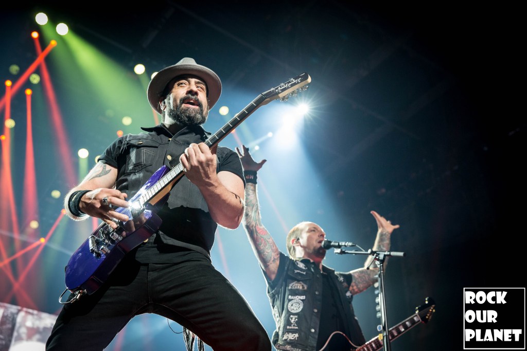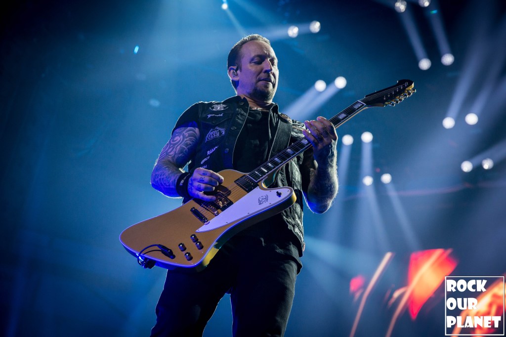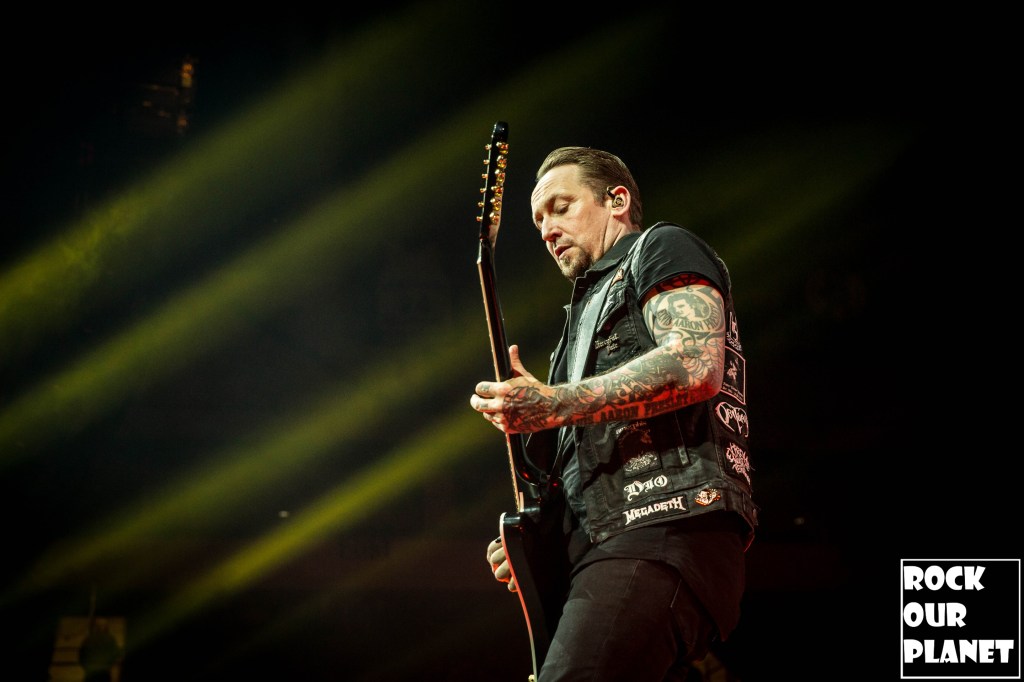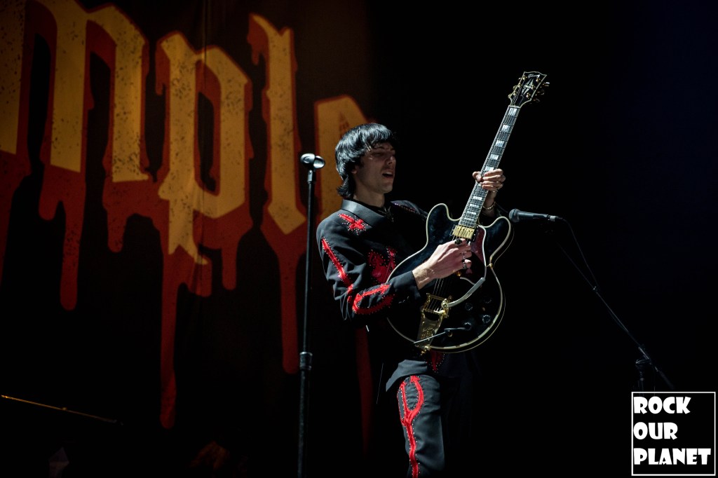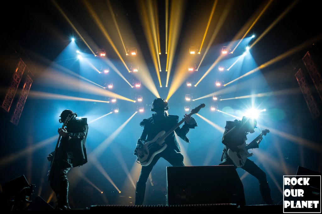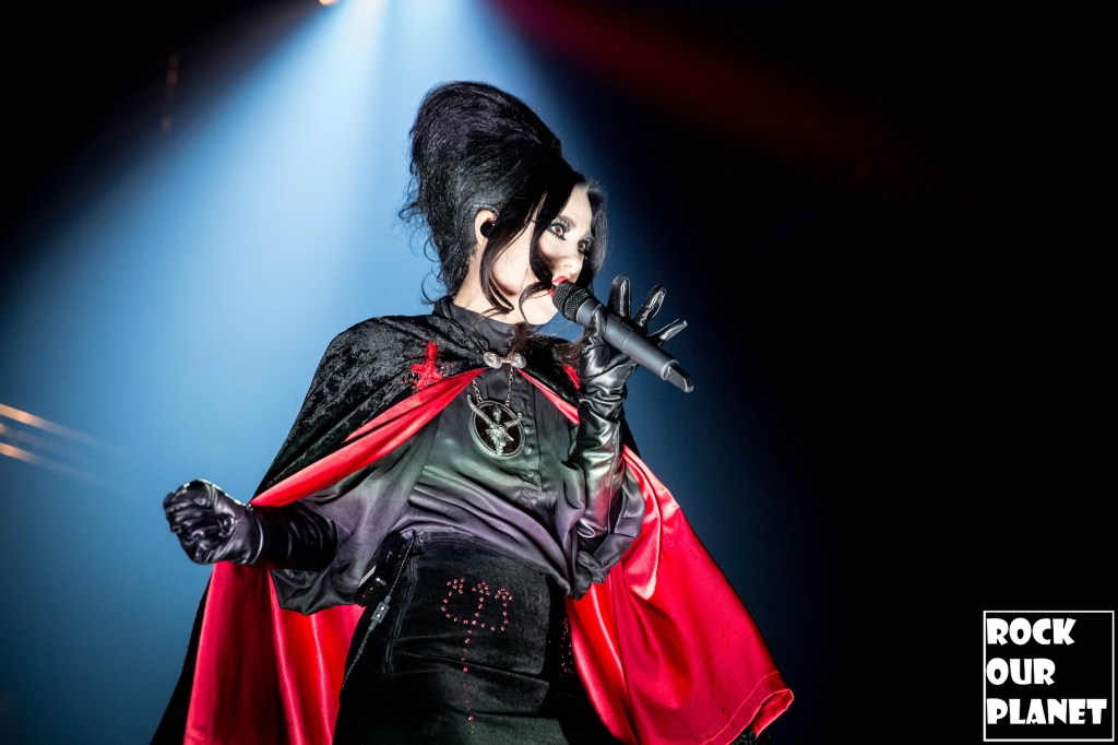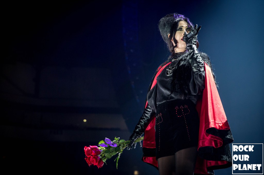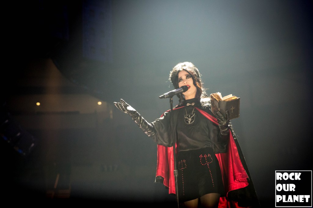 Since the last tour a few things have changed. Gone are the chrome facemasks of the Nameless Ghouls and the have been replaced with what is more a steampunk or post-apocalyptic type mask and Cardinal Copia was “elevated” to become Papa Emeritus IV. If you were wanting to hear the new single ‘Call Me Little Sunshine’ off their upcoming album ‘Impera‘ tonight you were out of luck as the band is under contract to debut it live on Jimmy Kimmel Live! but did kick off things with a new song ‘Kaisarion’ from the upcoming album. Papa Emeritus IV goes through so many costume changes it puts some pop stars to shame. Whether its a tattered jacket that looks like he could be a ringmaster at a dark carnival, bat wings, flowing robes, or a rhinestone studded jacket that made him look like a Satanic lounge singer. After a few songs as is accustomed at Ghost shows Papa takes a breather and engages the fans. He asked the crowd if they were drinking anything to the reply of a roaring crowd or maybe a little something in the parking lot before the show. Then asked if they liked movies and began playing ‘Hunter’s Moon’ that was used in last years ‘Halloween Kills’ movie. Even the Nameless Ghouls seemed to get into the antics when near the end of one song one of them held a note for a long period of time and then another came over and held his finger to his face in a be quiet kind of gesture but he just kept holding the note. Nearing the end of the set they played a cover of ‘Enter Sandman’, off of last year’s ‘Metallica Blacklist’ covers collection.
