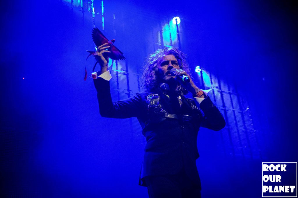 Before the band took the stage front man Wayne Coyne came out with a mechanical bird and talked to the crowd how when they were planning this tour he had a different mechanical bird that he was going to pull out during a song that has bird noises in it but could not find it and went on the internet and found this one. He said it was not as good as the one he lost but that this one might be able to fly and he launched it into the crowd and pulled out a large flashlight that he followed the bird with as it flew over the fans heads and eventually back on stage. Coyne also he told the audience how grateful he was that they were there and that everyone in the venue was there to have fun. He also said he was optimistic in that we have hopefully rounded the bend in the pandemic but that they treat every show as it could be the last one as you never know what could happen.