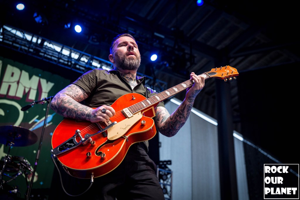 By the time Flogging Molly took the stage the sun had just went down and the temperature went down slightly. As the band took stage front man Dave King came out with arms raised and holding a can of Guinness. The band kicked things off with one of my favorites ‘Drunken Lullabies’ off their 2002 album of the same name. The band followed that up with ‘The Hand of John L. Sullivan’. King told the crowd that before they came out he had looked at the temperature in Ireland (King’s home country) before taking the stage and it was 55°F to which he said was one of the only times he would flip off Ireland. He also suggested to make sure fans stayed hydrated and held up a can of Guinness. King also addressed that tonight was bittersweet as The Interrupters should have been here tonight but Covid reared its fucking head. The band closed the night down with ‘Salty Dog’.