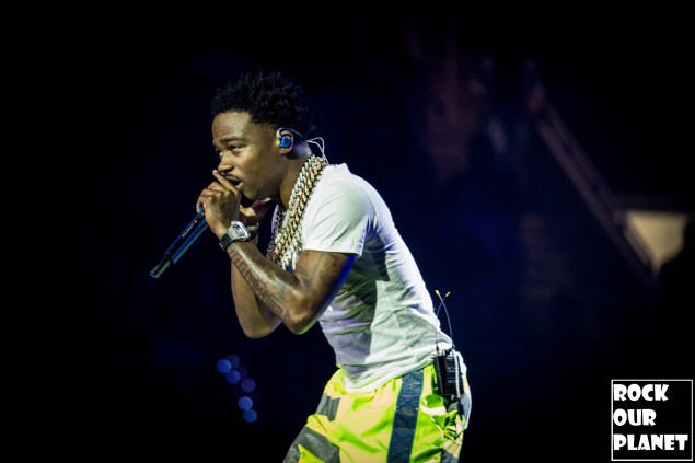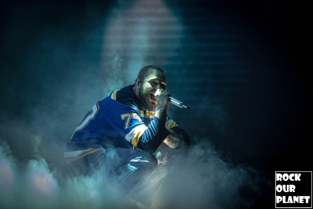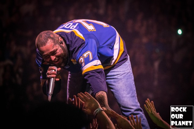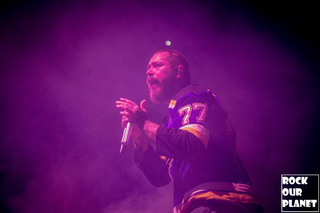 As the lights went down the crowd erupted and Post Malone entered the stage from a trapdoor at the center of the main stage shrouded by smoke and red lights and kicked things off with ‘Reputation’ off his new album Twelve Carat Toothache. It was the only time that he stayed on the main stage throughout the night as he spent a majority of his time walking down the three walkways that went into the crowd. During every song Posty took time to high five and shake fans hands that were outstretched and the fans gave back 110% by singing along to every song. Around midway into the set he told the crowd that “if anyone needs to use the restroom now’s the time to go as this is the most boring part of the night’ as he sat down on a stool and played Stay, Go Flex, and part of Circles on an acoustic guitar. During the second half of Circles he walked out to the edge of the stage and on his way back to where his guitar and stool were at the trapdoor had not been put back in place and he fell into it hitting his chest on one side of the hole. After about 5 minutes with medical assistance and crew attending him he got to his feat and told the crowd to give him about 5 minutes as he was helped off stage. Around fifteen minutes later he came back out to a rowing crowd and chants of Posty and apologized to the crowd and said he would give them a few more songs. He continued the set with rockstar, Cooped Up (with Roddy Ricch), Sunflower, Congratulations, and White Iverson. Throughout the last five songs you could see that he was still in a lot of pain as he was holding one of his arms against his ribs for most of the remaining songs. I am not sure how many artists would have continued to perform after something like this but Post Malone did just that and even ended up taking the time to sign things for fans before saying goodnight.