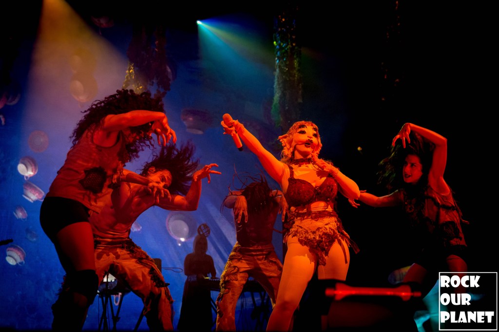 The Portals tour is a bit different than your average tour in that none of Martinez’s earlier songs are being played and that she is playing the new album from start to finish and then the encore is the three songs that were added to the deluxe edition. They also have photographers covering the shows shoot in three song blocks that are different from the previous night so fans can see the full range of the shows production and not just the first three like most concerts. The stage looks like a cross between a psychedelic Ferngully and Alice in Wonderland and transforms a bit with each song with large mushrooms for ‘Faerie Soirée’, a large spiderweb during ‘Spider Web’ a large moon passing over a red river on the large screen at the back of the stage for ‘Moon Cycle’ just to name a few. As soon as the lights went down the crowd started to chant ‘Melanie’. Opening with ‘Death’ and “The Void’, two songs that capture the transformation of the end of Crybaby and the beginning of something new. Throughout the night Martinez would hold her mic out to the crowd and the crowd would sing along to every word.