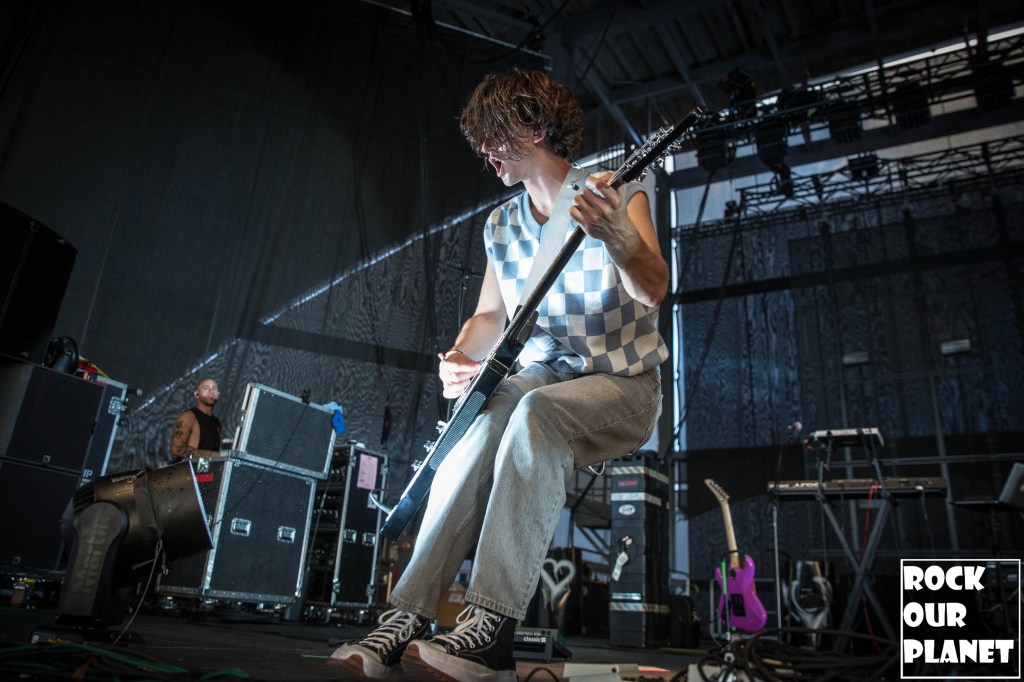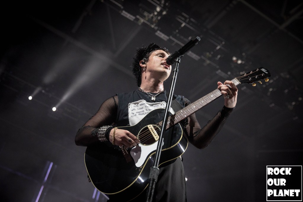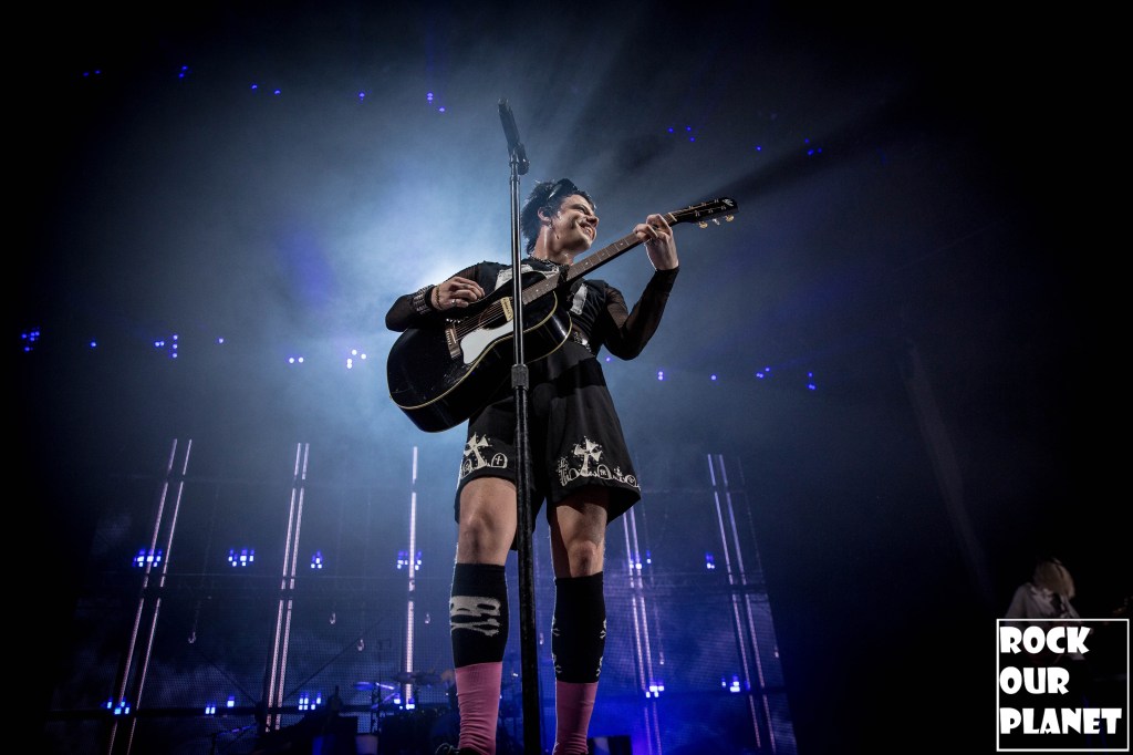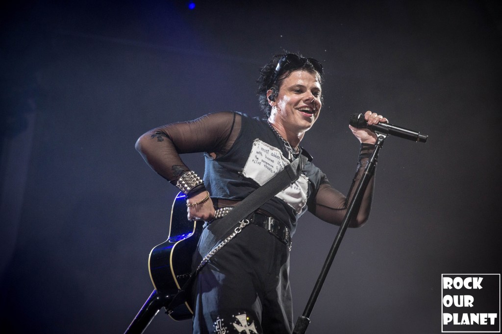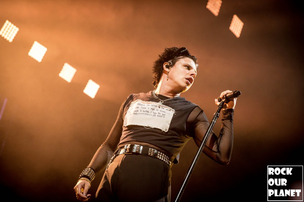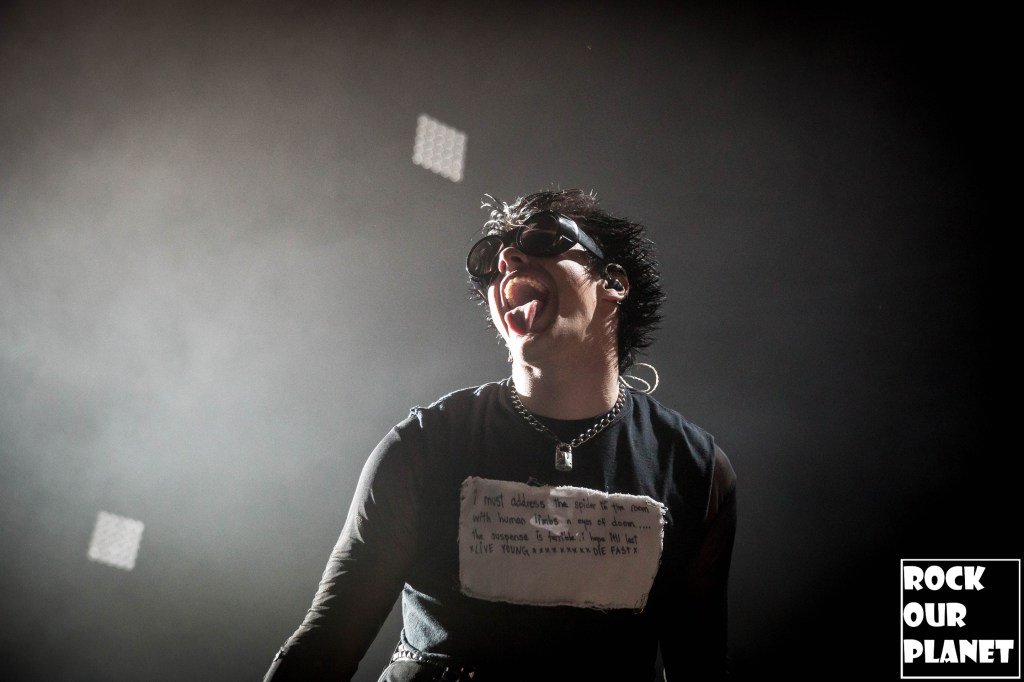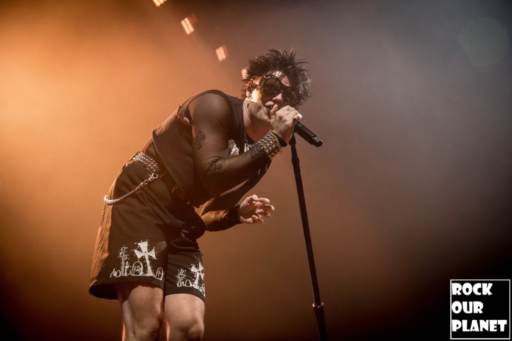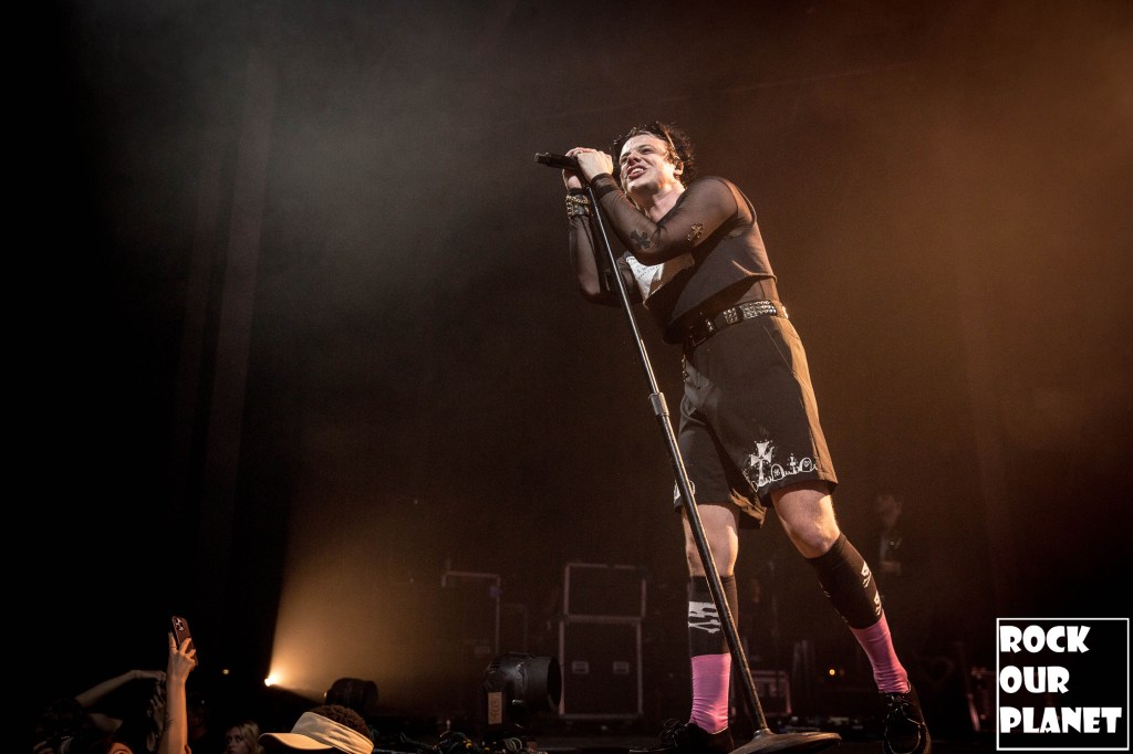 As the lights went down a silhouette of YUNGBLUD came up on the screen at the back of the stage that sprouted horns and then wings before coming out running full speed onto the stage kicking the night off with ‘21st Century Liability’ and then worked his way through ‘The Funeral’ and ‘Tissues’ both from his 2022 album YUNGBLUD.