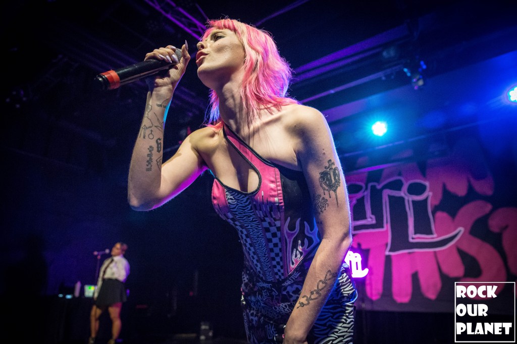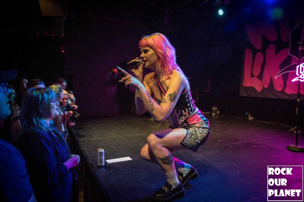 Girli started the night started off with the 2020 single ‘Has Been’ and the crowd sang along to every word from that point on with the exceptions of one unreleased song. A few songs into the set Girli wanted it known that her shows are safe spaces and if anyone is being made uncomfortable to let someone know as she remembers what it was like to go to shows. For people not familiar with Girli she is very vocal on LGBTQ+ rights and sings about feminism, sexuality, queer culture, and mental health. She brought up that a lot of her songs are about her mental health and how writing and singing the with the fans is a kind of therapy.