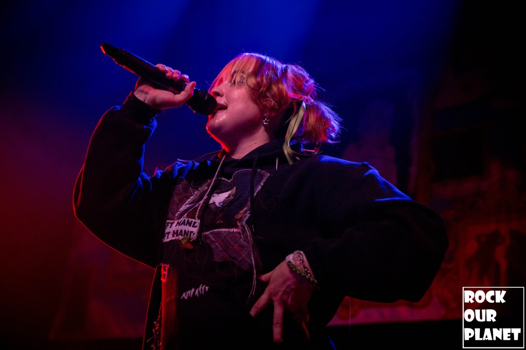 Once Girli took the stage it was nonstop energy and singalongs. Kicking things off with ‘Nothing Hurts Like A Girl‘, the first of six songs off her upcoming album ‘Matriarchy‘. Girli told the crowd that the reason that she chose ‘Matriarchy’ for the title of her upcoming new album was not to say that women were better than men, but that she was tired of seeing how women and LGBTQ+ people get treated in the music industry as it is mostly run by men. That is part of the reason that she has decided to have an all women crew on her tours. Along on this tour Girli brought Faber, a singer-songwriter from South London who has done backup vocals on Girli’s last two tours in North America and for the first time drummer Chloe Arnow. For people not familiar with Girli she is very vocal on LGBTQ+ rights and sings about feminism, sexuality, queer culture, and mental health, and that all her shows are safe spaces.