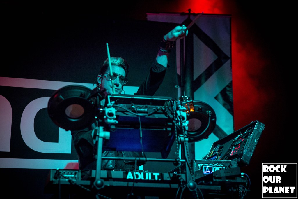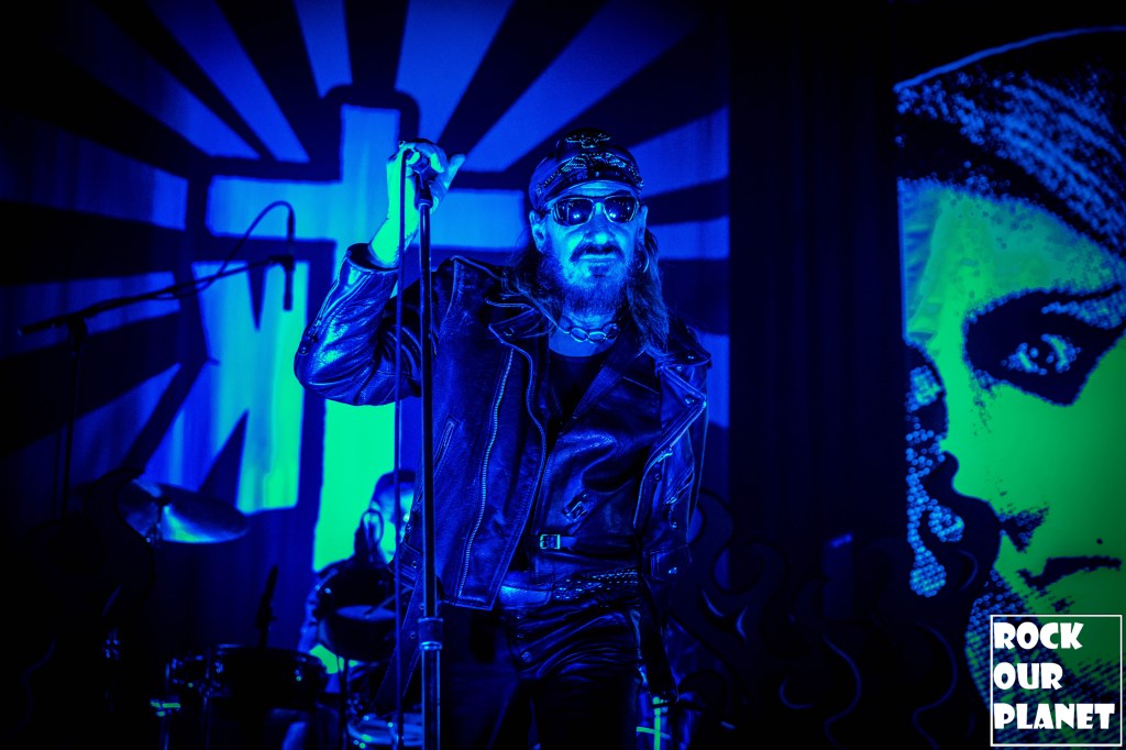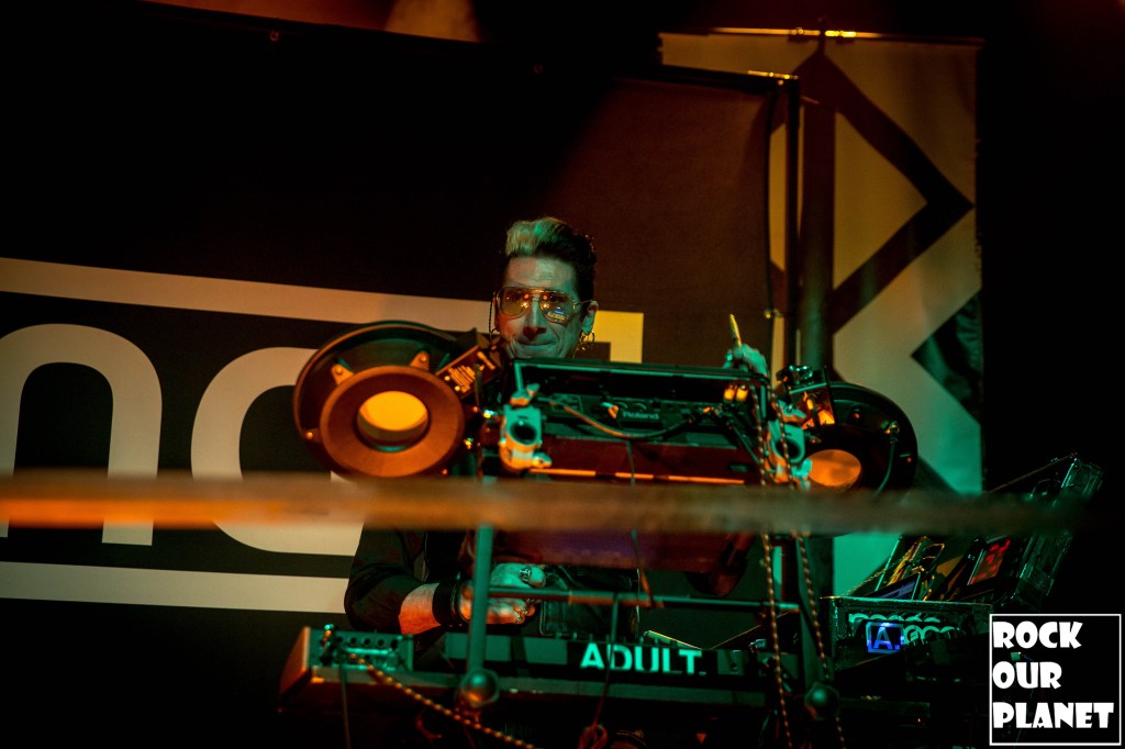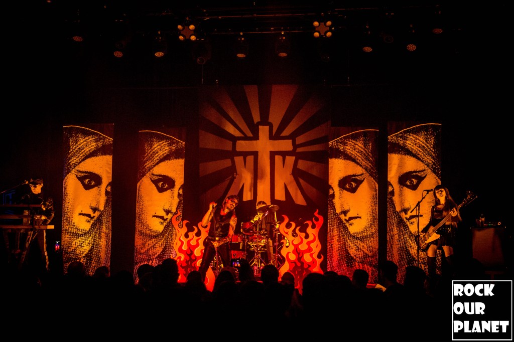 As the lights went down members of TKK took their spots. At stage right was Buzz McCoy (keys/tracks) , stage left was Mimi Star (bass guitar), and centered in the back on risers and flanked by sad Madonna banners on both sides and the TKK cross behind him was Justin Bennett on drums. Finally Groovie Mann came strutting in wearing a leather jacket, leather hat, and his shades and jumped into ‘Burning Dirt’. After ‘Burning Dirt’ Groovie told the St. Louis crowd it was good to see everyone and be back before really getting the night going with ‘A Daisy Chain 4 Satan’. It didn’t take long for fans to start dancing to the hypnotic beats and pulsating lights. The band really doesn’t engage with stage banter and lets Groovie Mann’s dancing and the music do its thing. I went out to the bar near the end of ‘Rivers of Blood, Years of Darkness‘ to grab a drink and as the beginning of ‘The Days of Swine and Roses‘ kicked in I overheard a fan in line say I’m not missing this one and jumped out of line along with several other fans, including myself. The main set ended with ‘And This Is What the Devil Does‘ off their debut album I See Good Spirits and I See Bad Spirits. The band did not stay gone long before coming out without Groovie for the instrumental ‘Final Blindness‘. Once Groovie took the stage again the band played the final four songs of the encore. The night of fans dancing and singing along ended with ‘Kooler Than Jesus‘.
