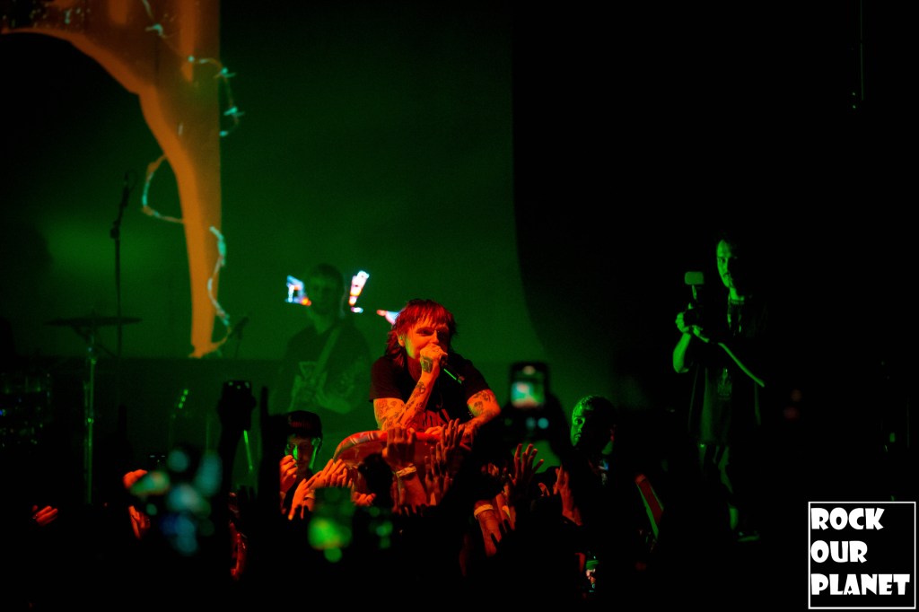 Soon after opener SUICIDAL-IDOL left the stage you could feel the energy in the room building until Sueco took the stage. The sold out room erupted the minute he came on stage and didn’t let down till he left. Kicking off the night was ‘Bathroom Floor‘ off his most recent album Attempted Lover. Sueco did a great job of keeping a good mix of old and new songs in the set along with some slower songs like ‘4:52AM‘, and even a cover of ILLENIUM’s ‘Story Of My Life‘. The newest song in the set was ‘Love and Rage‘, a song that Sueco said literally just dropped two weeks ago and had the crow sing “love and rage” when he would point to them while singing the song. Somewhere around the middle of the set Sueco brought out a surfboard he called the “Crowd Surf 9000” and literally went crowd surfing. He eventually stood up on it at one point and performed and then told the crowd that there is only one way to get down from the surfboard and in an ultimate trust fall fell backwards into the sea of fans and was carried back to the front of the stage. All in all if you get the chance to catch Sueco out on tour I would highly recommend it as he definitely puts on an amazing show and will not disappoint you.