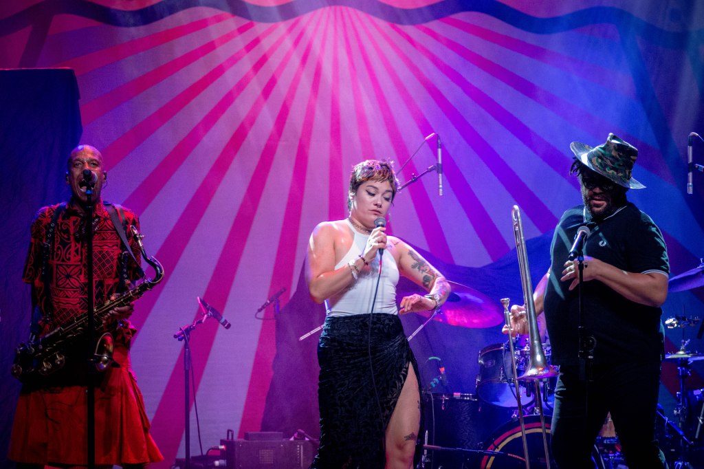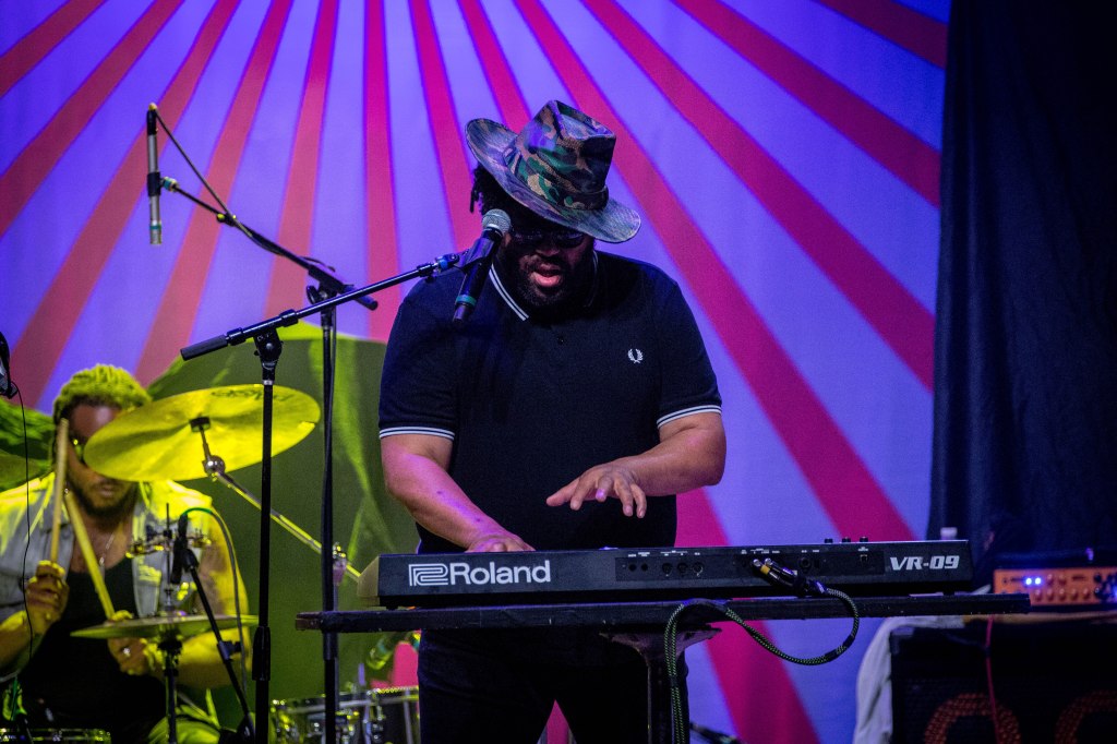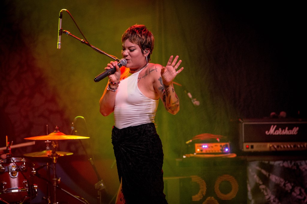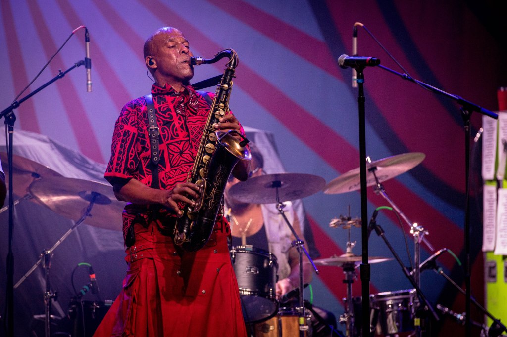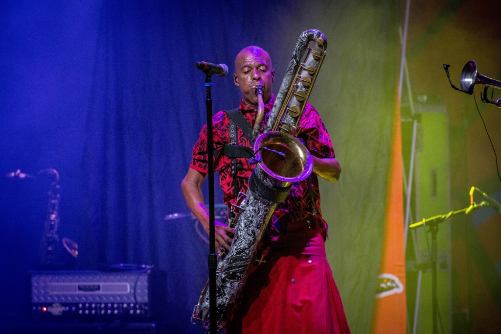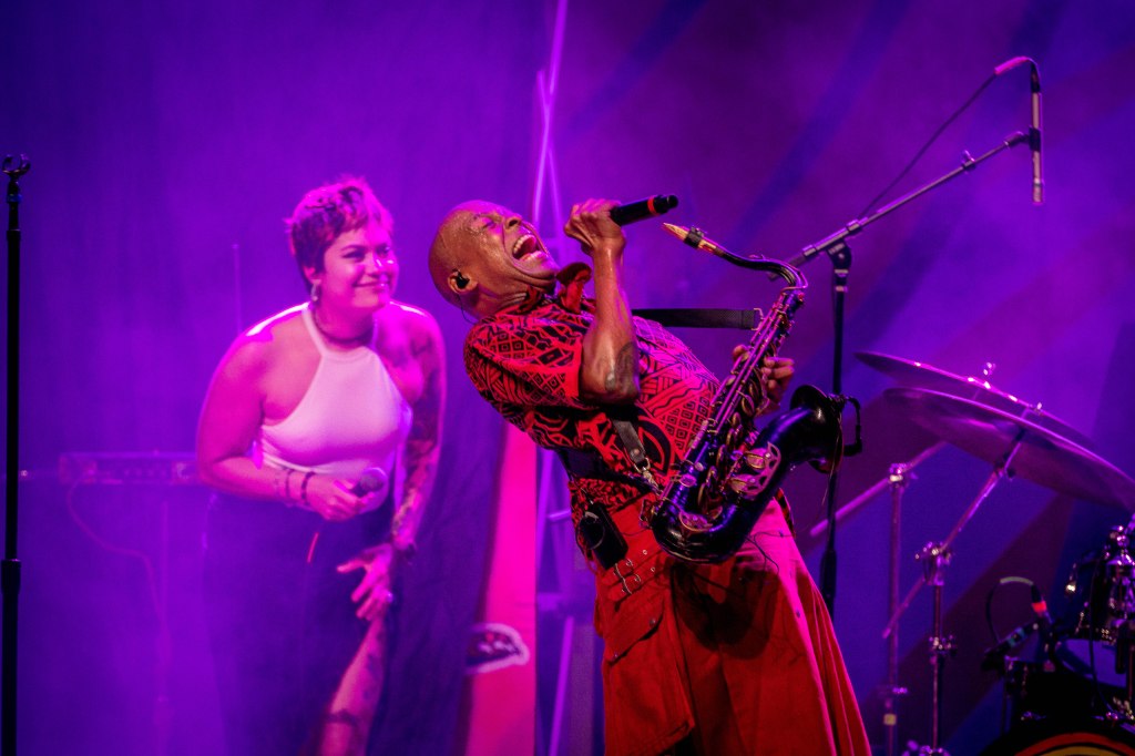 As soon as members of Fishbone started to take the stage you could feel the energy that they bring starting to swell. Angelo Moore, dressed in a red and black top, a red kilt and a matching red bowler hat, grabbed the mic and said this set is called ‘Fuck President Trump’ before the band kicked into ‘Party at Ground Zero‘. Talking to a fan the following night at Coheed and Cambria he said that Moore reminds him of a cartoon caricature brought to life and that is probably the best way to describe him as he has boundless energy and his stage presence is practically unmatched from any band that I have seen. Keyboardist Kayleigh Malloy of Catbite accompanied the band on saxophone. Catbites Brittany Luna accompanied the band for ‘Lyin’ Ass Bitch‘. Angelo’s daughter Cheyenne came out and played saxophone and sang on ‘Skankin’ to the Beat’ and closed out the set with ‘Racist Piece of Shit‘. After their set fans could find Moore and a few other members of the band at the merch table talking with fans, getting pictures taken, and having things signed. I happened to have brought an 8×10 picture that I had shot with black and white film back in 2011 at City Museum just in the off chance that I ran into Moore and was able to get it signed.