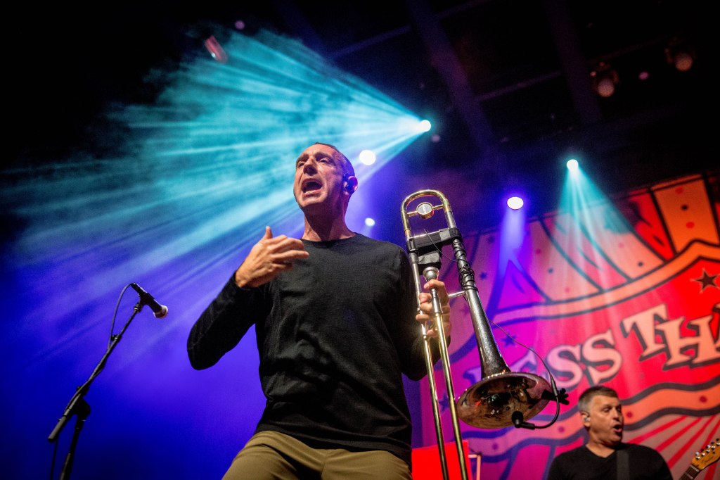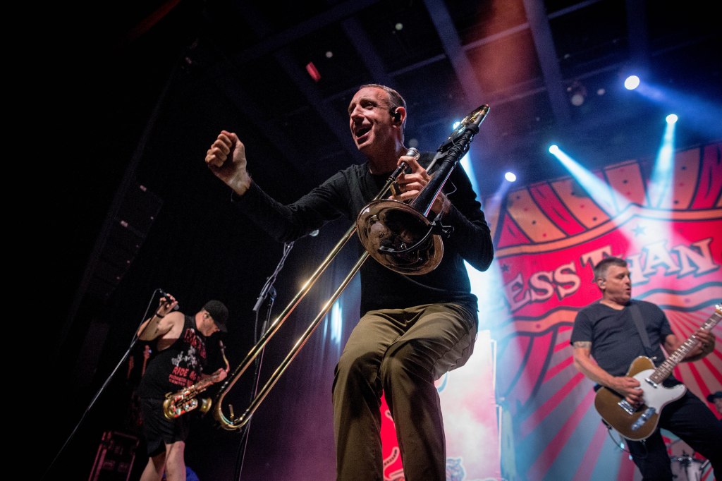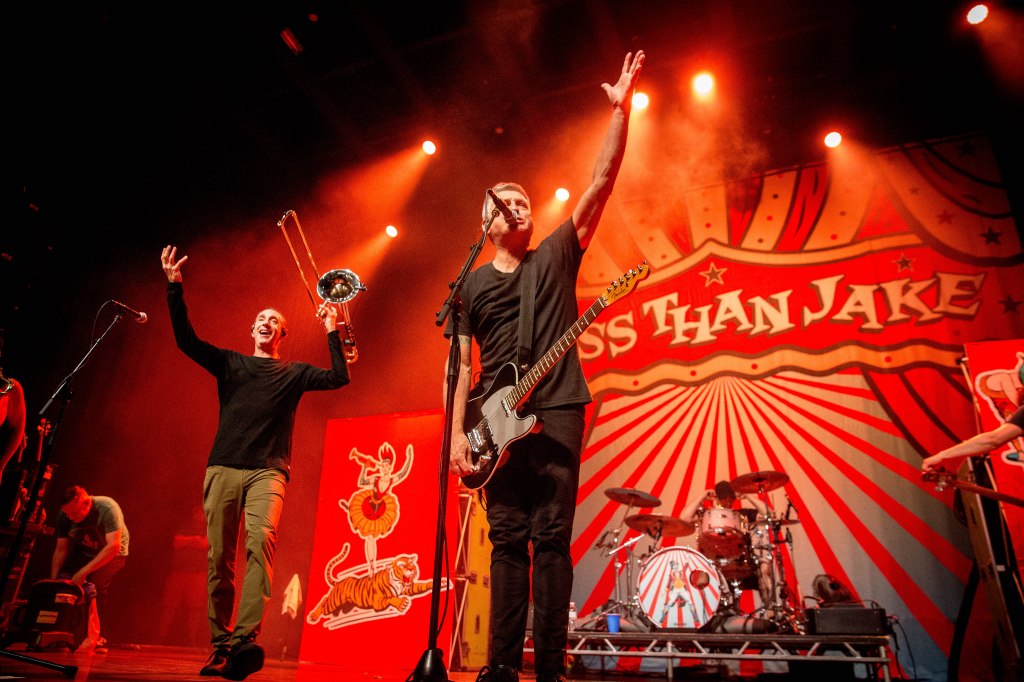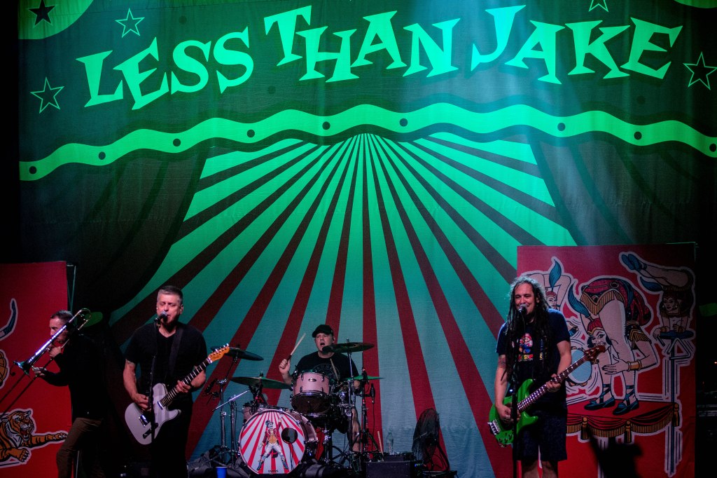 Less Than Jake came out firing on all cylinders and never really took the foot of the gas. The band opened with ‘Gainesville Rock City‘ and followed it with ‘Lie to Me‘. With the opening of ‘Johnny Quest Thinks We’re Sellouts‘ I started to feel sorry for the bouncers in the pit as only two were working it and that surprised me with it being a ska-punk show. Sure enough as soon as the song kicked in you could see crowd surfers starting up. Singer/guitarist Chris DeMakes joked a few times during the set when the band would take a slight talking break that it was for the fans as they were not as young as they used to be. He also talked about playing small venues in St. Louis and his first experience walking into Pop’s in Sauget, IL at 4am and people sitting at the bar still getting shitfaced. He said that he had also beenhaving people on the internet say that he is not dressing like someone in their late 40’s to which singer/bassist Roger Lima commented that he still dresses like he is twenty-seven and pointed to his Super Mario Brothers shirt. DeMakes even brought up Lima ‘s love of cartoons and Lima said that right now his favorite is Bob’s Burger’s. In the 80’s it was The Flintstones and the Jetsons and the 90’s was The Animaniacs. The band followed up with a cover of The Animaniacs theme song. The band closed out the night with ‘Last One Out of Liberty City‘, ‘Help Save the Youth of America From Exploding‘, and ‘Look What Happened’.