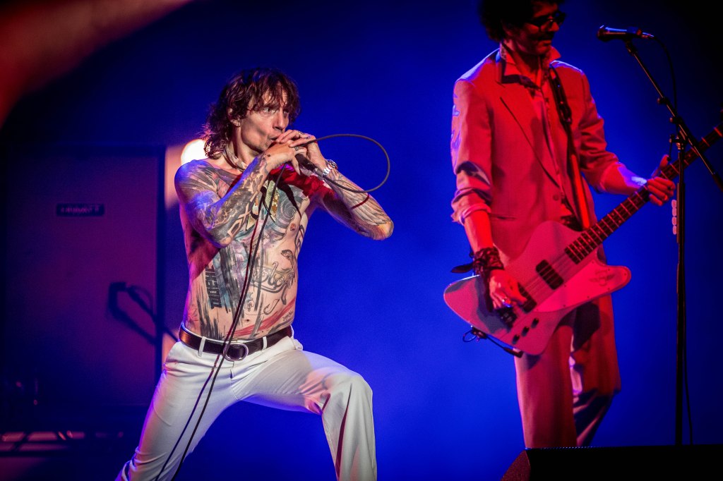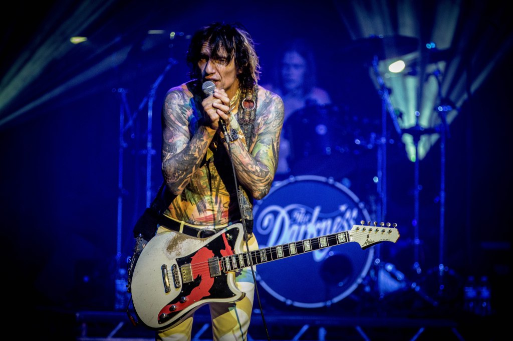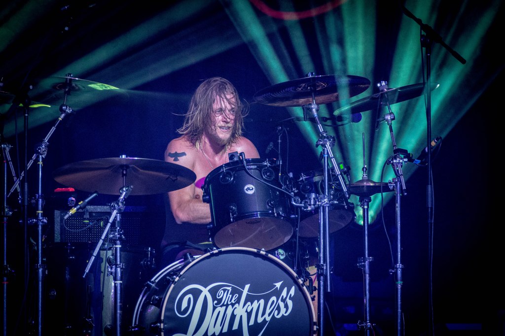 Saturday night England’s The Darkness kicked off their twenty-eight date North American Dreams on Toast tour at The Pageant in St. Louis. The tour runs till November twenty-second in Denver, CO at Summit Music Hall. The band consists of Justin Hawkins on vocals and guitar, his brother Dan Hawkins on guitar and backing vocals, Frankie Poullain on bass guitar and backing vocals, and Rufus Taylor on drums and backing vocals. The band is on tour in support of their eighth album Dreams on Toast that was released back in March. This was the first show that Mark Daly and The Ravens have played in the U.S. and was drummer Kyle Hughes first show with the band as their previous drummer quit right before the tour.