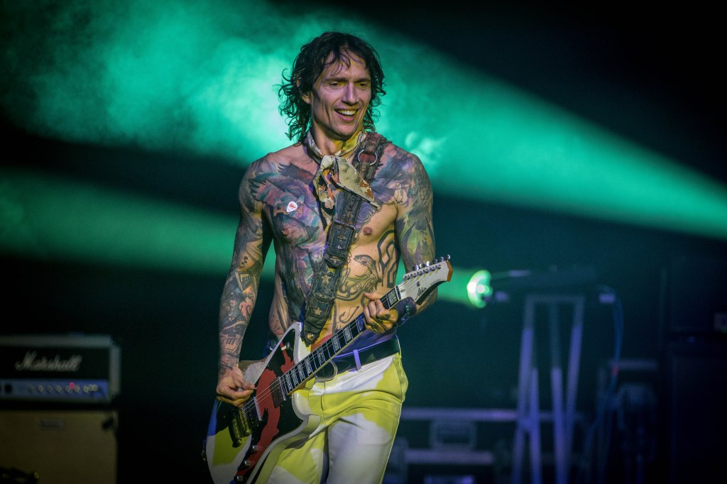 The Darkness kicked things off with ‘Rock and Roll Party Cowboy‘ off their new album Dreams on Toast. The band followed up with fan favorite ‘Get Your Hands Off My Woman‘ with some crowd interaction and sing along. Frontman Justin Hawkins did a little back and forth with the crowd harmonizing with them and saying you cant do that with autotune. Justin knows keep the crowd entertained. Whether or not he was telling stories of playing the blues in Chicago with their touring guitarist several pints into a bender, standing on his head and clapping with his legs, or doing his best David Lee Roth flying splits he knows how to work the crowd. He even had the crowd face one way during the song ‘Walking Through Fire‘ and pretend to walk in that direction. After ‘Givin’ Up’ Hawkins told the crowed that he would not be singing the next song. He paused for a minute and then said that is the part that you are all supposed to boo and then repeated it to a thundering boo from the crowd. Instead drummer Rufus Taylor came out and sang ‘My Only‘ while the bands drum tech filled in on drums. It reminded me of the times I have seen the Foo Fighters and drummer Taylor Hawkins would come out and sing a song or two. The band closed out the set with ‘I Believe in a Thing Called Love‘ the third single from their debut studio album, Permission to Land. The band came out for a one song encore of ‘I Hate Myself’.